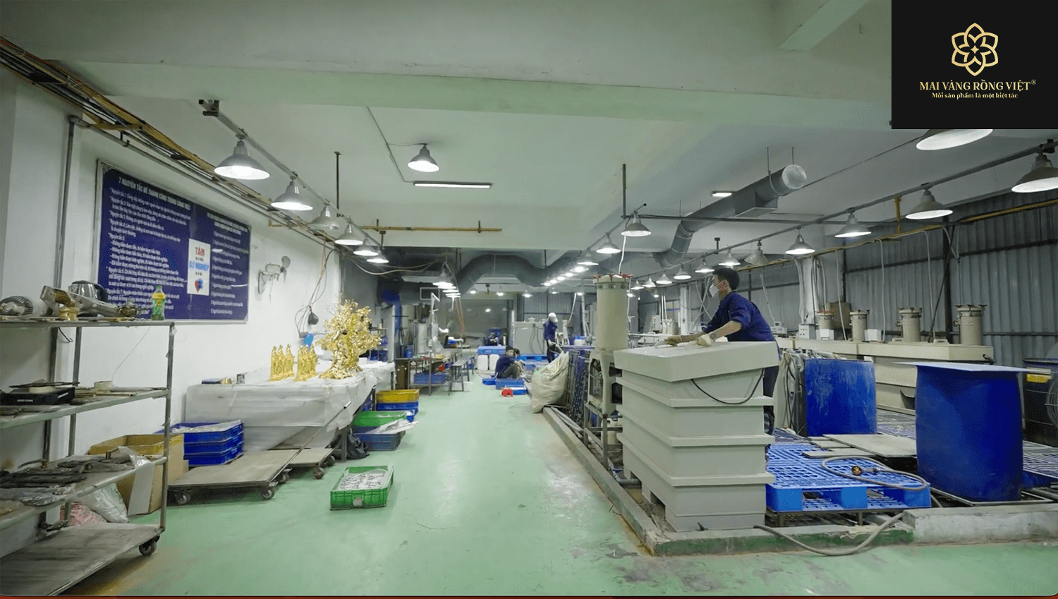 Mai Vàng Rồng Việt sở hữu hệ thống máy móc hiện đại, đảm bảo quy trình sản xuất khép kín và chất lượng sản phẩm tốt nhất. Các thiết bị tiên tiến không chỉ nâng cao hiệu suất làm việc mà còn giúp sản phẩm đạt độ chính xác cao và tinh xảo trong từng chi tiết. Sự kết hợp giữa công nghệ hiện đại và tay nghề nghệ nhân tạo nên những sản phẩm đồng đẹp mắt và bền vững.